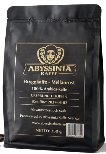 Ethiopian Sidamo bryggkaffe – mellanrost. Aromatiskt och välbalanserat kaffe med toner av citrus, bär och choklad. Färskrostat i Sverige av 100% Arabica-bönor från Sidamo, Etiopien.
